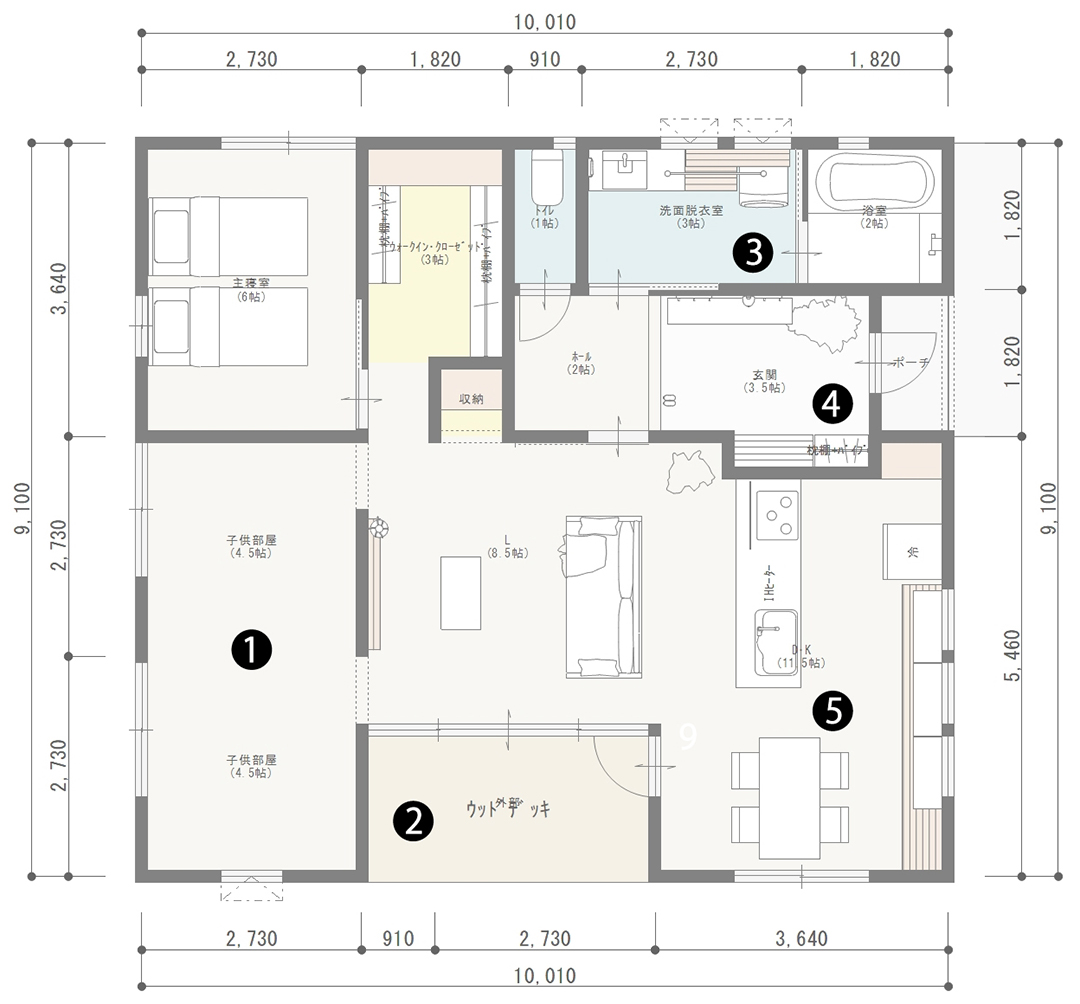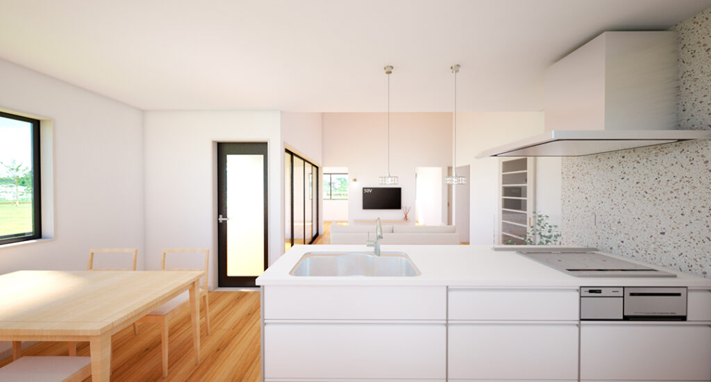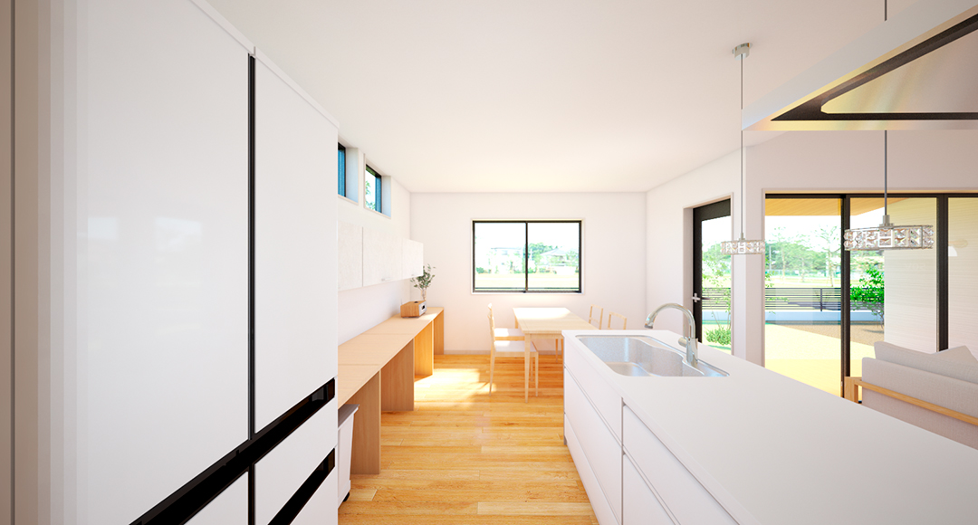 一部をカウンターにしてスタディースペースや家事スペースにしても