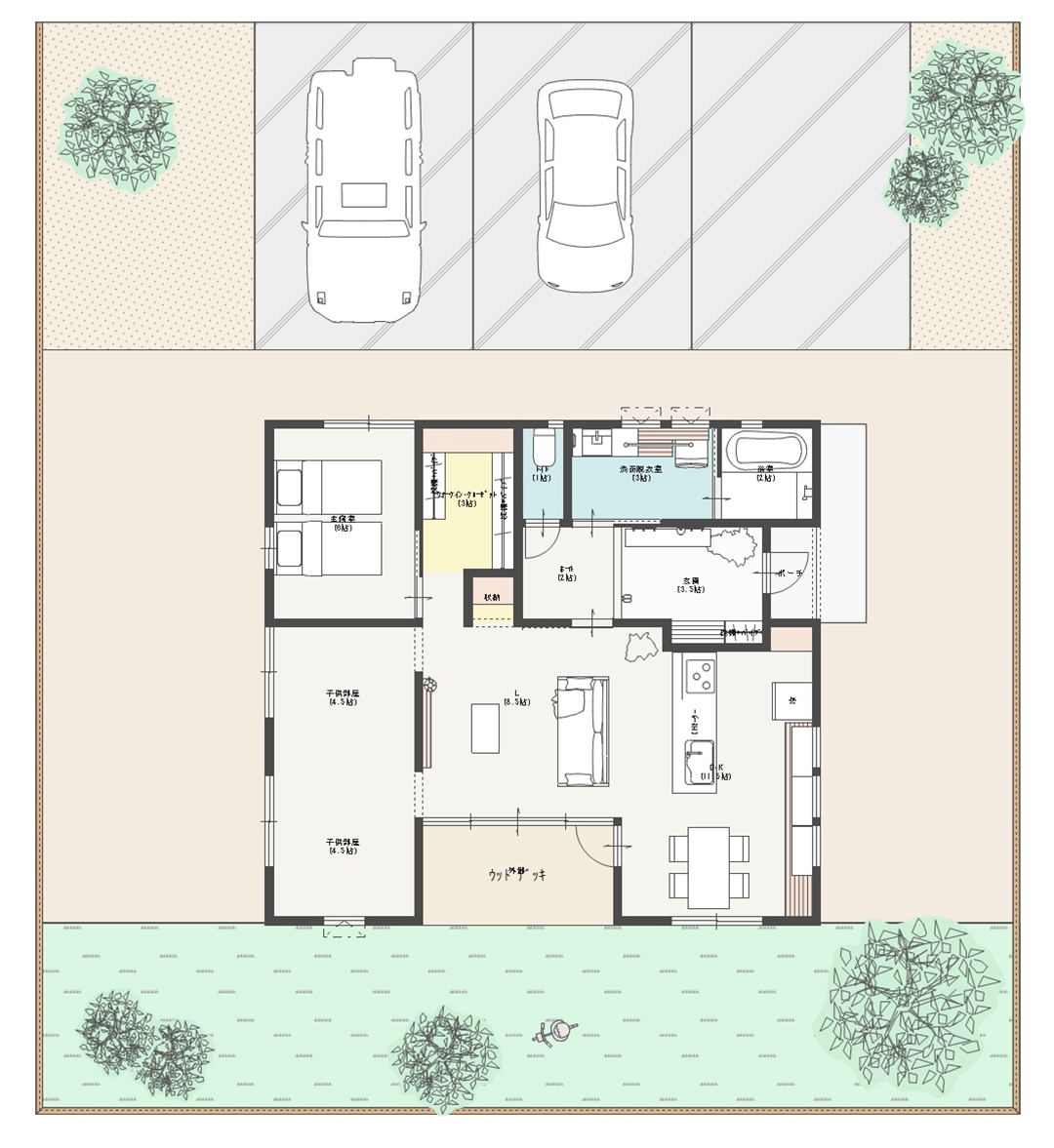 時期が来たら入口を設置して9畳の広々子供部屋として使用してもいいし、4.5畳ずつで仕切って2部屋にも◎